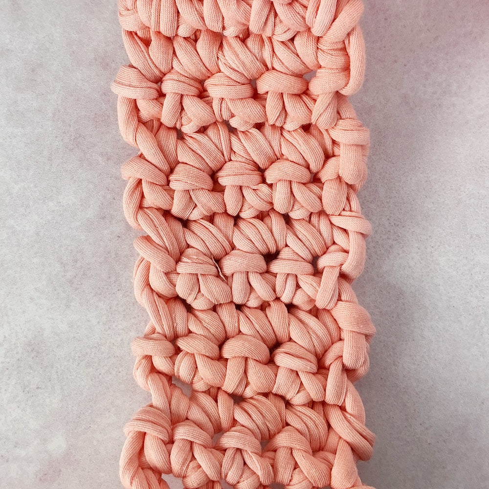 Get everything you need to create this durable adjustable strap to carry your yoga mat or beach towel in style! Kit includes 275g of T-shirt yarn (cotton or cotton/poly blends), an aluminum 10mm crochet hook, two 3 1/4” wooden rings to make the strap adjustable, and a printed pattern with some close up photos of the tricky bits.