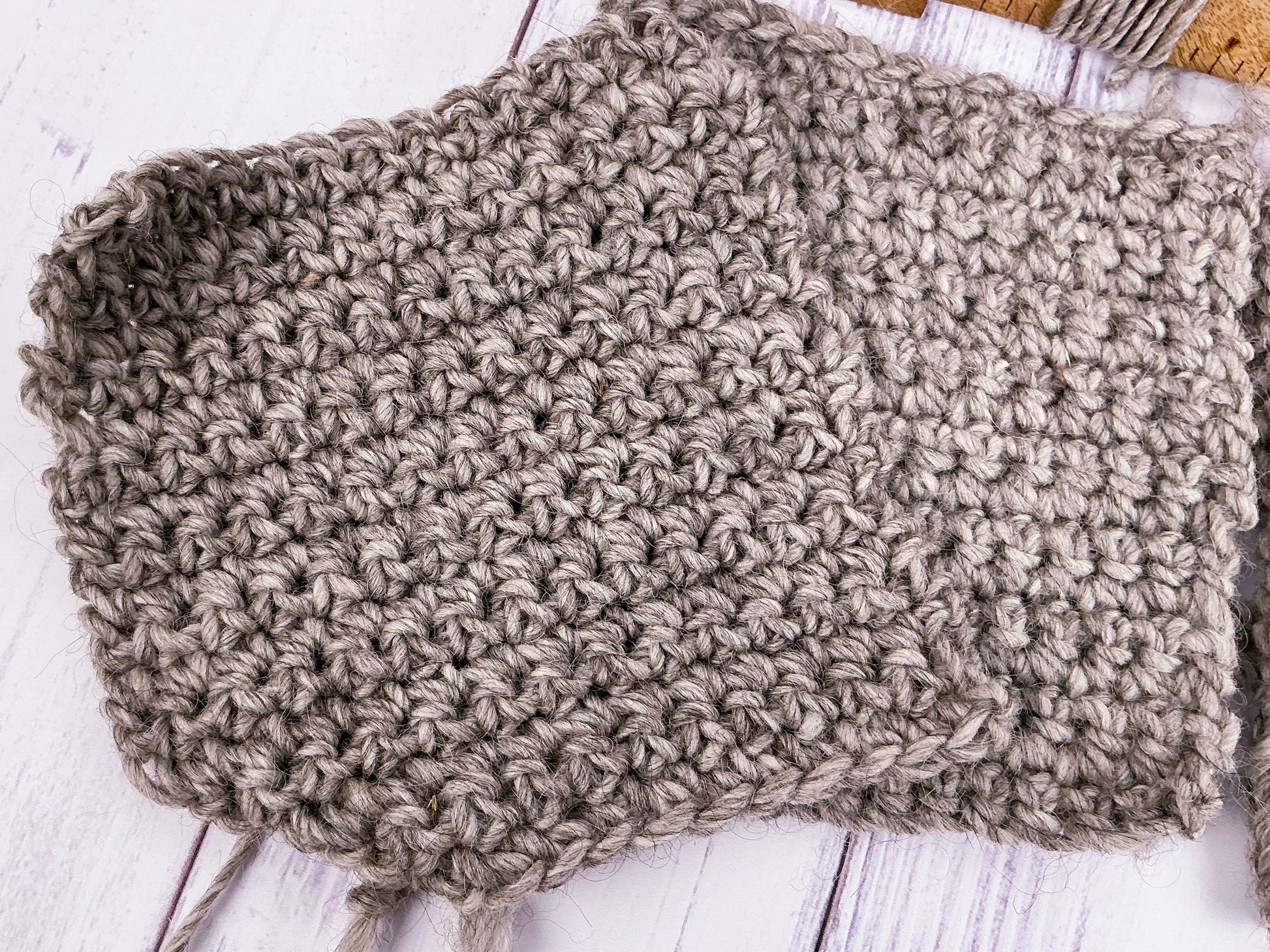 For the crochet swatch on an L/8.00mm hook I got 10 ½ sts x 12 rows = 4” in single crochet after washing.