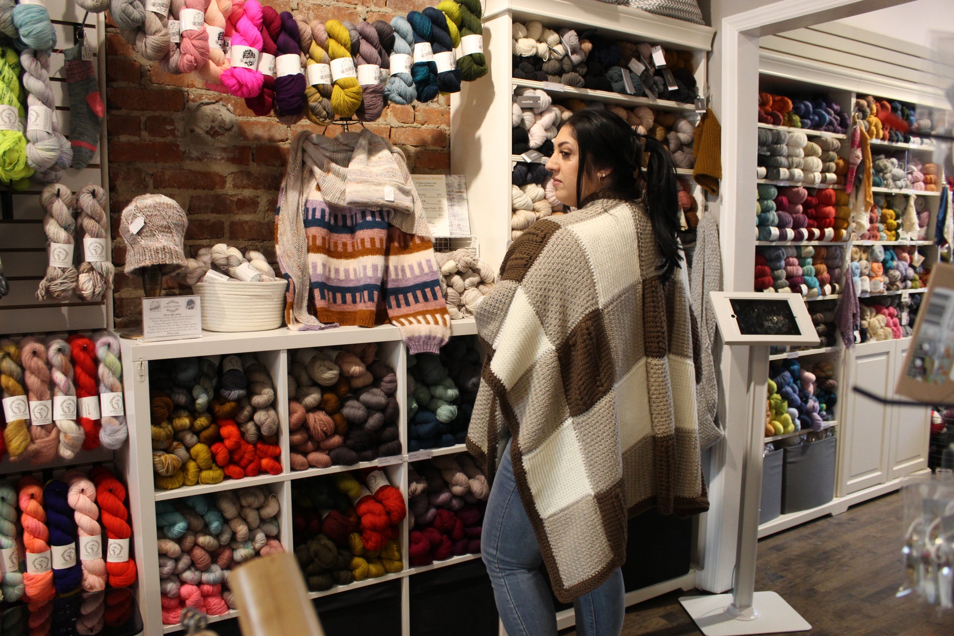 This warm and cozy wrap is made with four different blocks – each with its own Tunisian stitch pattern. Use three colors or worsted weight yarn as shown in the model for a buffalo plaid effect, enjoy the texture on its own and work all in one color, or go a little crazy and use up scrap yarn from other projects and make each block a different color for a vibrant statement piece!